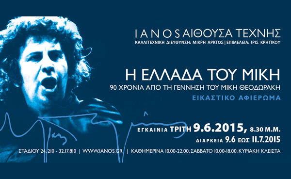 Γιορτάζοντας τα 90 χρόνια από την γέννηση του Μίκη Θεοδωράκη, η ΙANOS Αίθουσα Τέχνης διοργανώνει μια ομαδική εικαστική έκθεση αφιερωμένη στον κορυφαίο έλληνα συνθέτη. Η έκθεση θα εγκαινιαστεί την Τρίτη 9 Ιουνίου στην Αθήνα, ενώ στη διάρκεια του 2015 θα ταξιδέψει στην Γκαλερί του ΙΑΝΟΥ στη Θεσσαλονίκη, αλλά και σε άλλες πόλεις σε όλη την Ελλάδα.