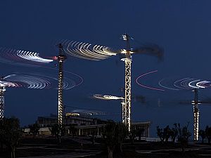 Κατασκευαστικοί γερανοί σε ρόλο χορευτή στο εργοτάξιο του Κέντρου Πολιτισμού του Ιδρύματος Σταύρος Νιάρχος...