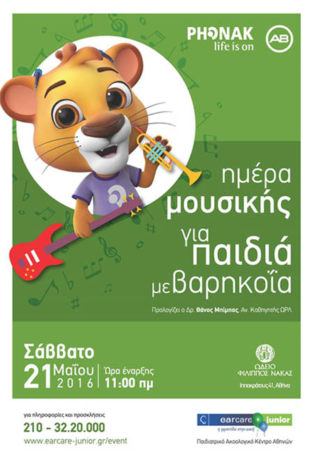 Με ιδιαίτερη χαρά, το Earcare Παιδιατρικό Ακοολογικό Κέντρο Αθηνών και το Ωδείο Φίλιππος Νάκας, προσκαλούμε τους μικρούς μας φίλους με βαρηκοΐα, χρήστες ακουστικών βαρηκοΐας ή κοχλιακών εμφυτευμάτων σε ένα μαγικό ταξίδι στο κόσμο της Μουσικής!