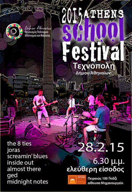 Οι μαθητές της Αθήνας ανανεώνουν το ραντεβού τους με τη σκηνή, στο Athens School Festival που διοργανώνει ο Οργανισμός Πολιτισμού, Αθλητισμού και Νεολαίας του Δήμου Αθηναίων, το Σάββατο 28 Φεβρουαρίου τις 6.30μ.μ. στην Τεχνόπολη του Δήμου Αθηναίων.