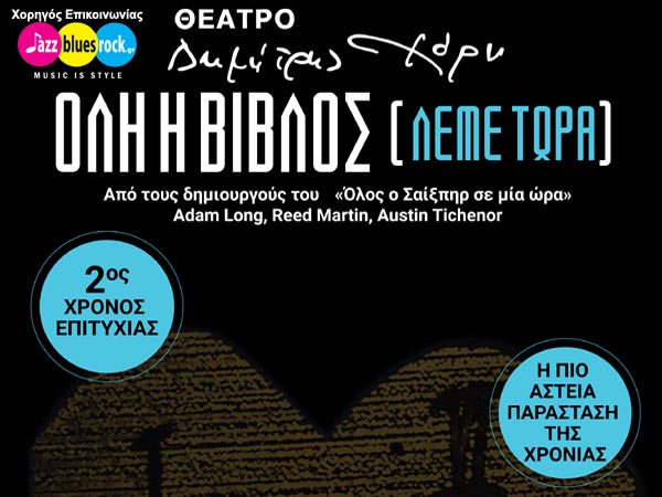 Μετά την επιτυχία τους «Όλος ο Σαίξπηρ σε μία ώρα», οι συγγραφείς Α.Long, R.Martin,A.Tichenor, συμπύκνωσαν όλη τη Βίβλο (The Bible: The Complete Word of God- abridged)σε μία κωμωδία που έσπασε ταμεία σε Αμερική και Αγγλία, για πολλά χρόνια. Το 2015, χρονιά – ορόσημο για τη χώρα μας, παρουσιάζεται για πρώτη φορά και για ένα μήνα σε Αθηναϊκό Θέατρο, σημειώνοντας μοναδική επιτυχία.