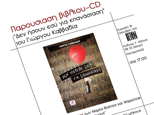 Παρουσίαση βιβλίου-CD «Δεν ήσουν εσύ για επανάσταση» του Γιώργου Καββαδία