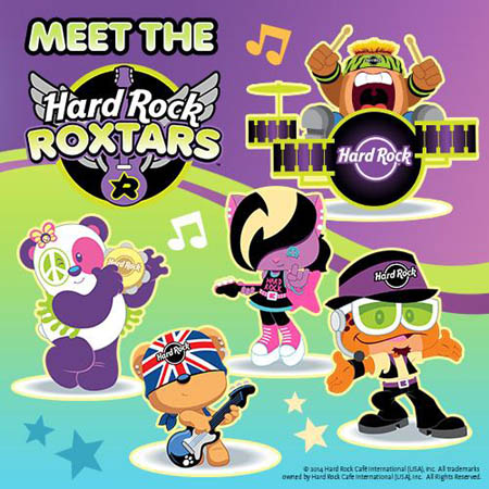 · Τη συλλογή των Roxstars: μια σειρά παιχνιδιών και αντικειμένων αφιερωμένη στους παιδικούς ήρωες Hard Rock. Μερικά από τα αντικείμενα της συλλογής είναι το λούτρινο αρκουδάκι Hard Rock (Hoodie Bear), το παιδικό πιάτο και ποτήρι Roxstars και άλλα!