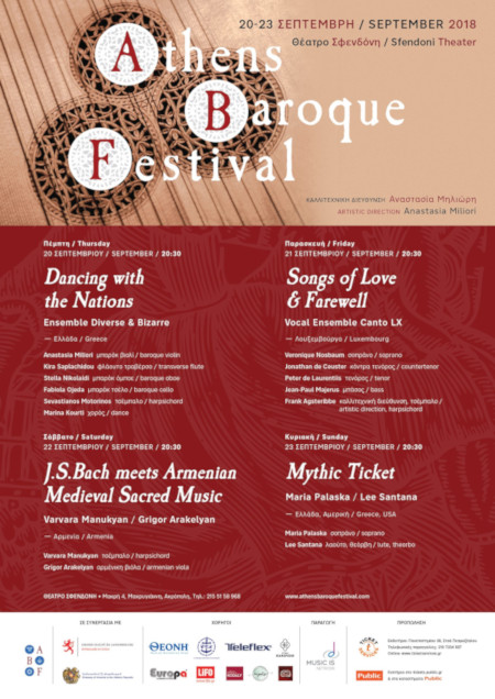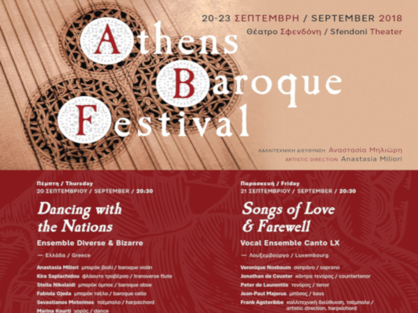 Το Athens Baroque Festival καταφτάνει από τις 20 έως τις 23 Σεπτεμβρίου 2018 στο Θέατρο Σφενδόνη.