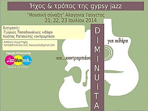 Το σεμινάριο θα περιλαμβάνει ομαδικά τμήματα τζαζ αρμονίας, gypsy jazz κιθάρας και κοντραμπάσου...
