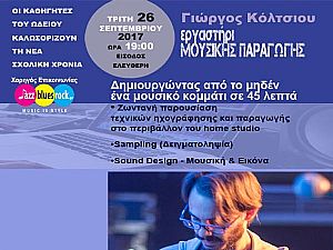 Στο εργαστήρι θα παρουσιάσει ζωντανά ορισμένες δυνατότητες ηχογράφησης και πειραματισμού μέσα στο περιβάλλον του home studio, όπως ηχογράφηση φωνών και κιθαρών επεξεργασμένων ψηφιακά στον υπολογιστή, virtual synths, drum machines, beat making...